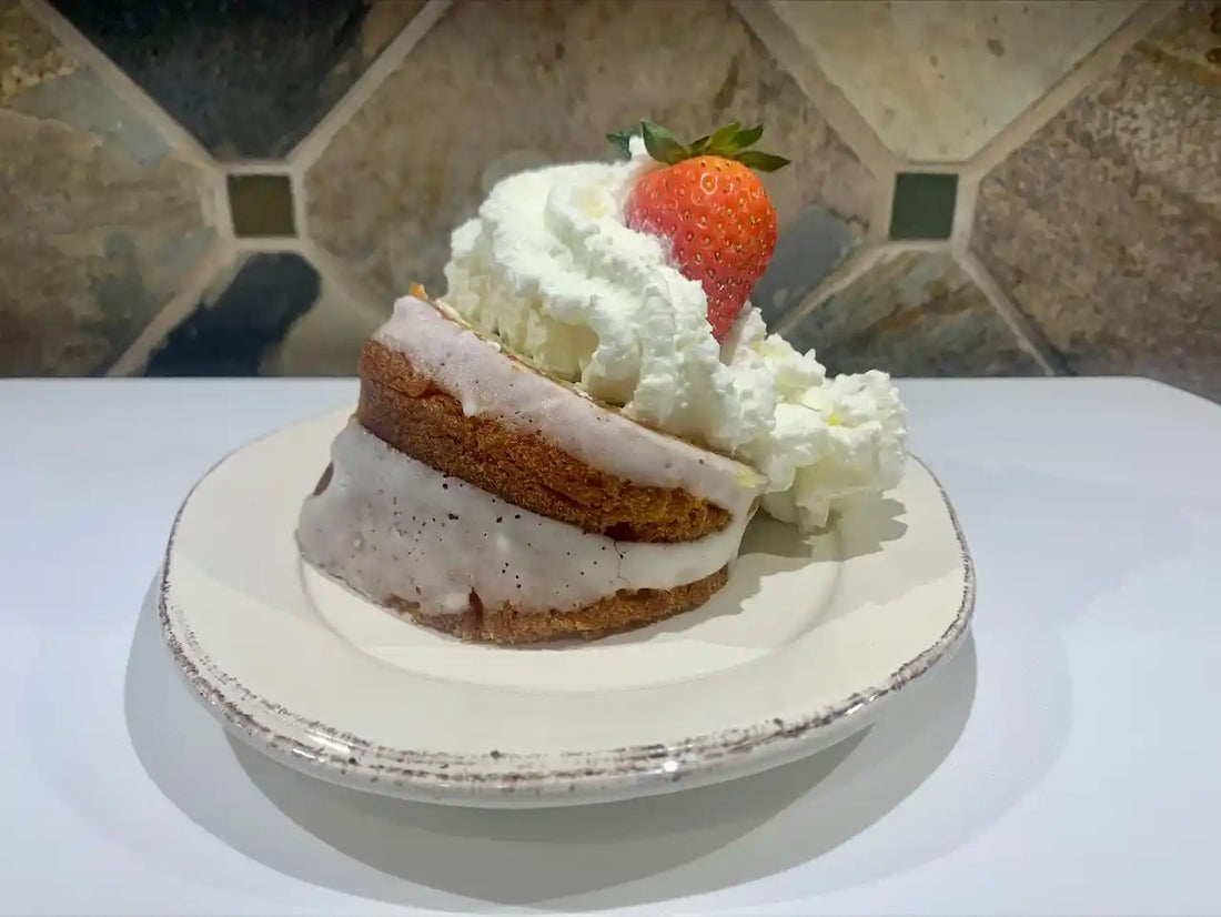 Preheat oven to 350 degrees. Grease and flour 2 loaf pans (or one bundt pan). Mix the flour, baking powder and salt thoroughly in a large bowl and sift together. Set aside. In the bowl of a stand mixer, using the whisk attachment, beat the sugar, lemon olive oil lemon zest and vanilla on high speed until well blended. Add the eggs one at a time, beating well after each addition. Beat for 3-5 minutes until mixture is thick and pale yellow. In a small bowl, combine the milk and sour cream. Stop the mixer and pour half of the milk mixture. Beat until blended. Repeat with half of the flour. Scrape the batter into the two loaf pans or bundt pan. Bake for 50-60 minutes or until a skewer comes out clean. Cool the pans on a rack.