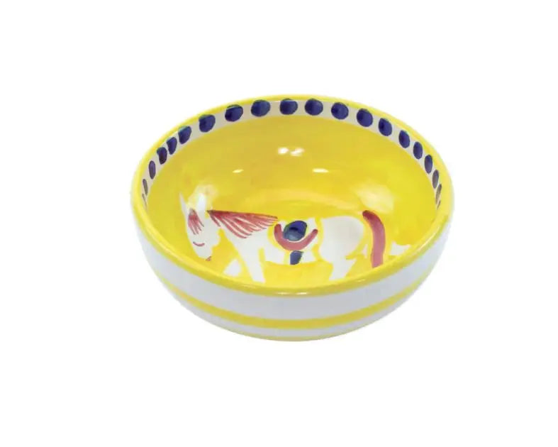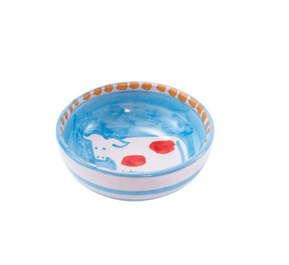 These colorful olive oil bowls feature whimsical hand-painted animals!