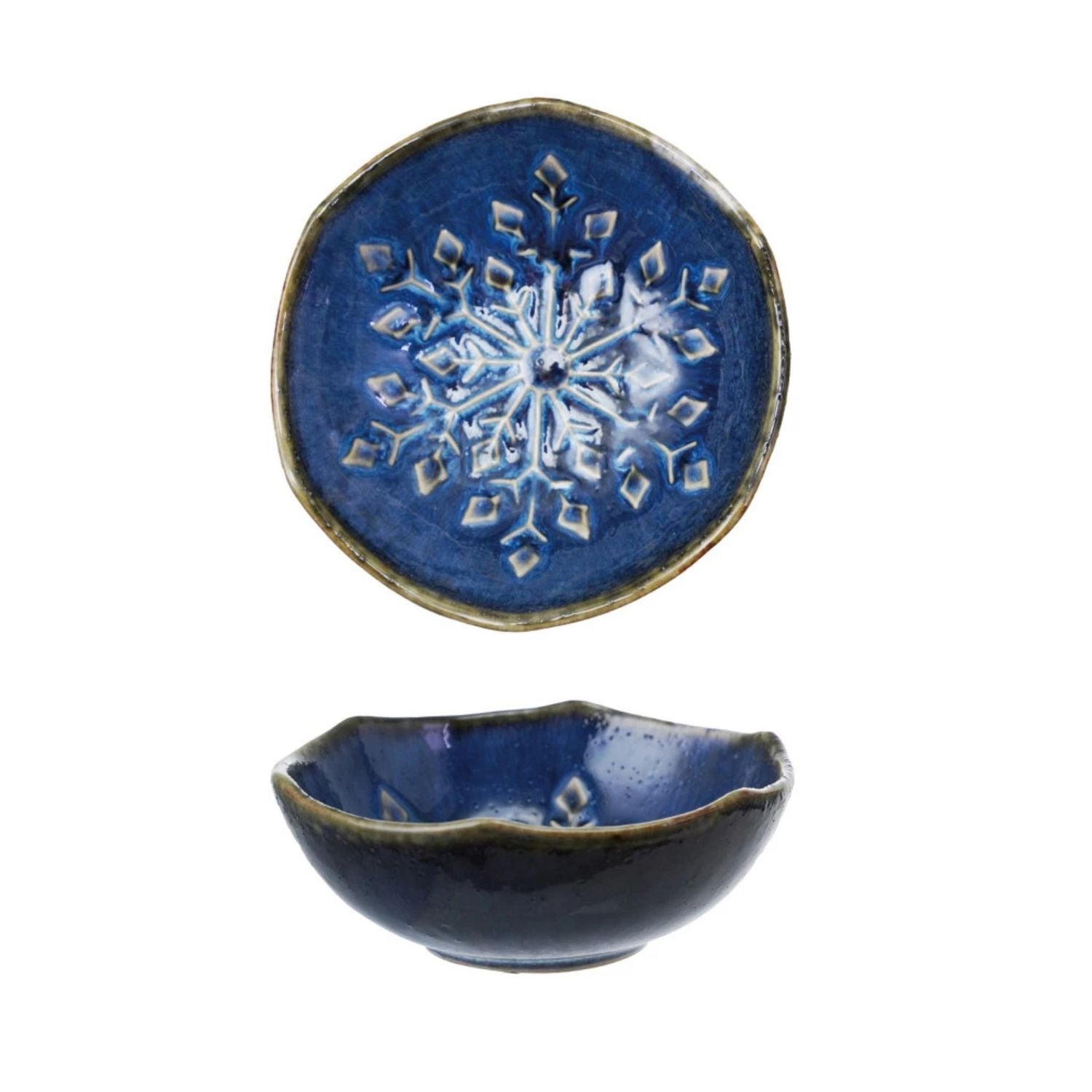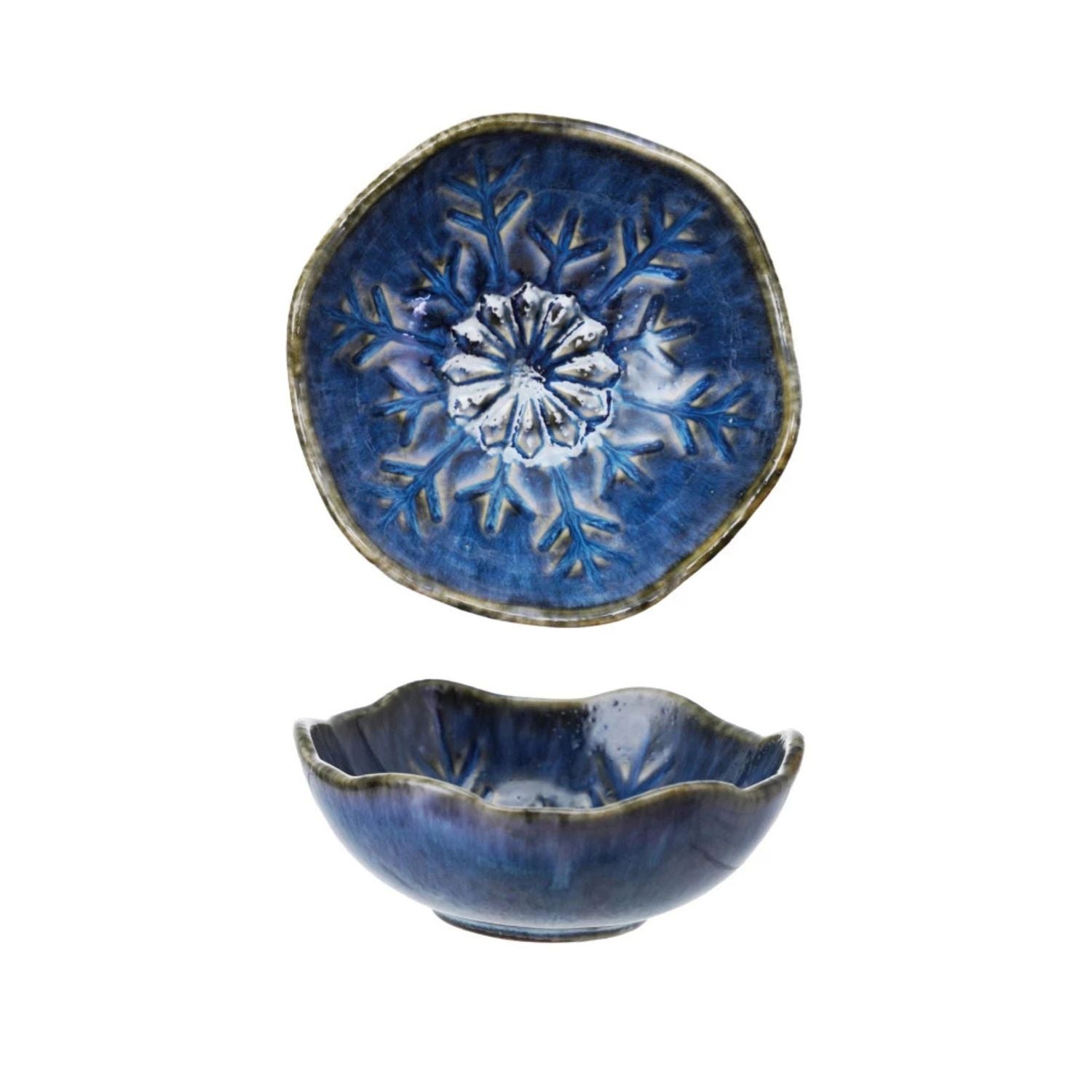 Organic shaped with reactive glaze, these snowflake bowls will take you past the holidays. Just like real snowflakes, no two bowls are alike, but they do come in two styles. Great for bread dipping, serving condiments, cookies and more!