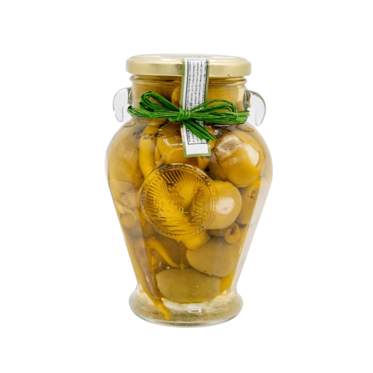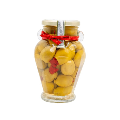 Many of the products in our new olive collection are comprised of the rare Gordal olive. These olives are massive. In fact, the name “Gordal” literally translates to “the fat one” in Spanish. The Gordal’s low oil content, firm, meaty texture, and mild savory flavor make it a true rare delicacy among table olives. Our product is handpicked and stuffed in Spain, and always represents the current crop.
