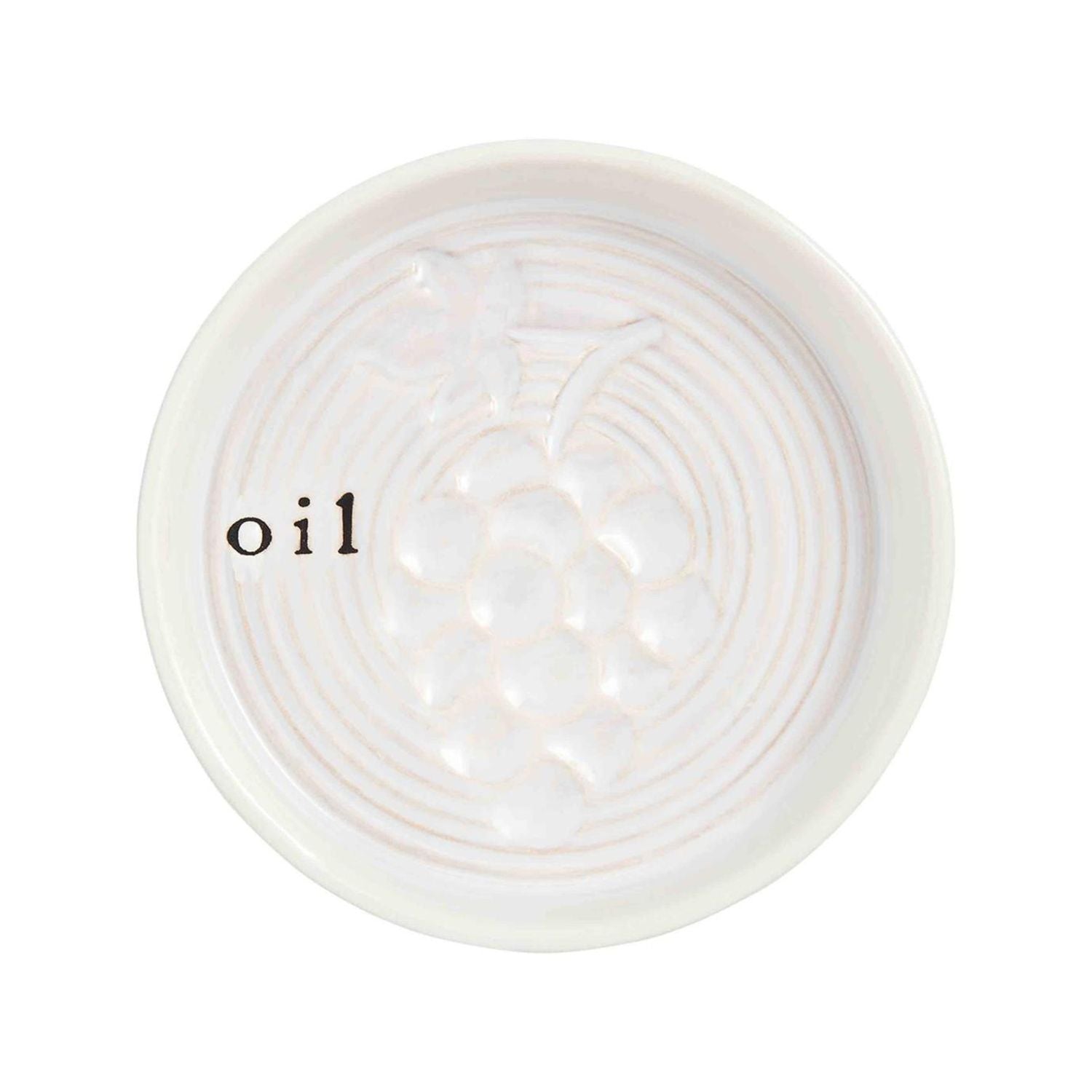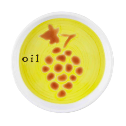 Textured ceramic dipping dishes that appear to be back lit when our olive oil and/or balsamic vinegar is poured into them.