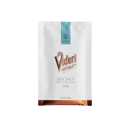 70% Sea Salt Dark Chocolate: Dark chocolate with a little coarse sea salt sprinkled on the back. Smooth, delicious, and just salty enough to get that irresistible sweet-salty combo. Like a chocolate covered pretzel without the pretzel, this is our year round best selling chocolate bar.